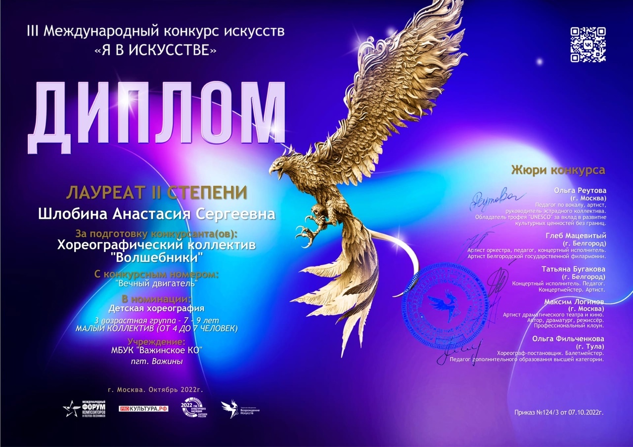 Лауреатом || степени награжден Хореографический коллектив “Волшебники", танец «Вечный двигатель»