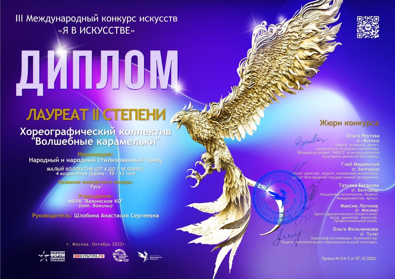 Лауреатом || степени награжден Хореографический коллектив “Волшебные Карамельки», танец «Русь»