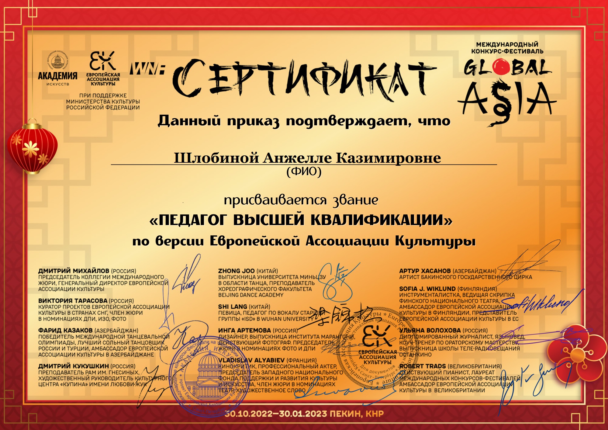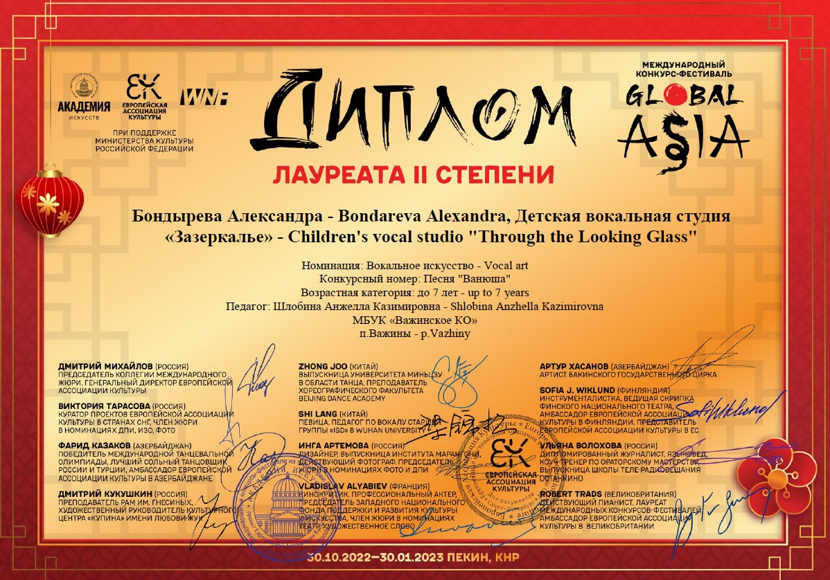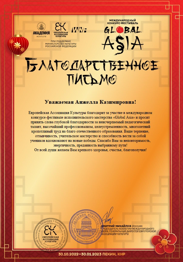 Международный конкурс-фестиваль "Global Asia" 2022 (Китай),