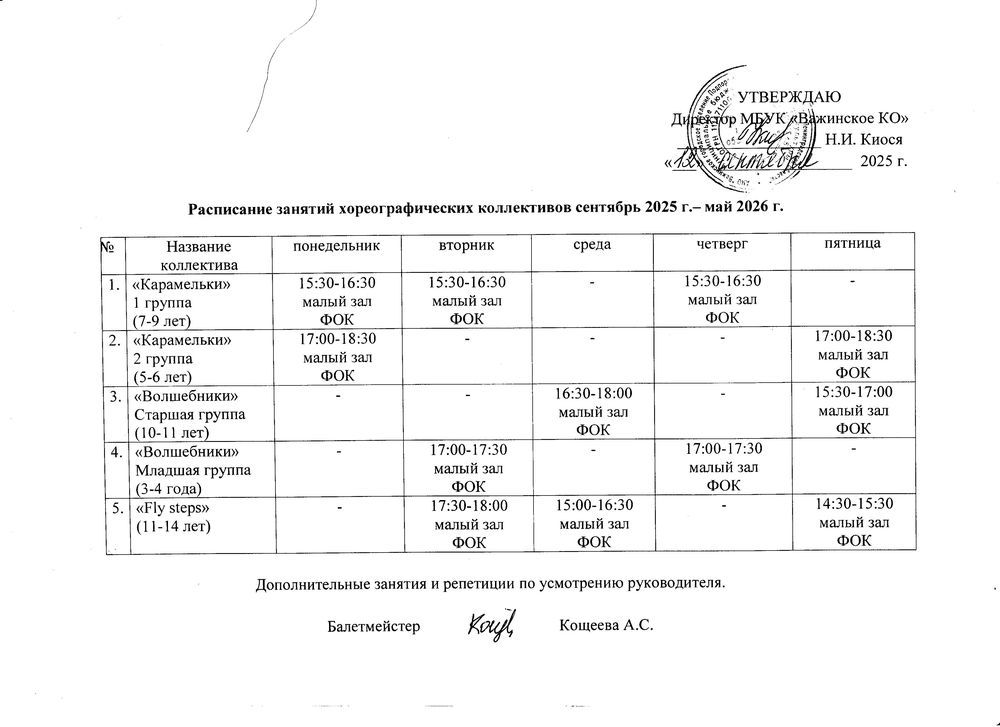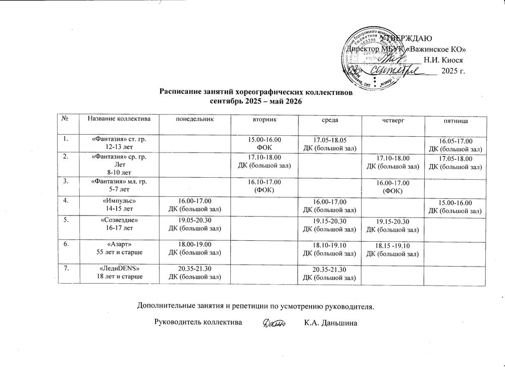 Расписание занятий и репетиций самодеятельных творческих коллективов Важинского КО